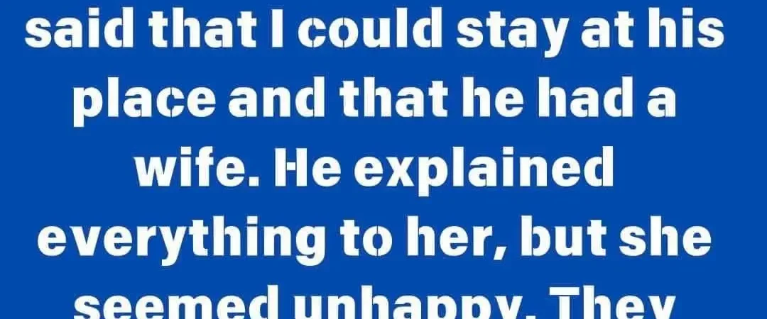 I had a fight with my boyfriend, he made me leave our home. I was crying at work. My boss said that I could stay at his place and that he had a wife. He explained everything to her, but she seemed unhappy. They started muttering to each other.