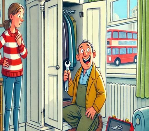 “Okay!” said the repairman, ‘I’m going to step inside the wardrobe, you close the door behind me, till I see if I can detect what the problem is.”