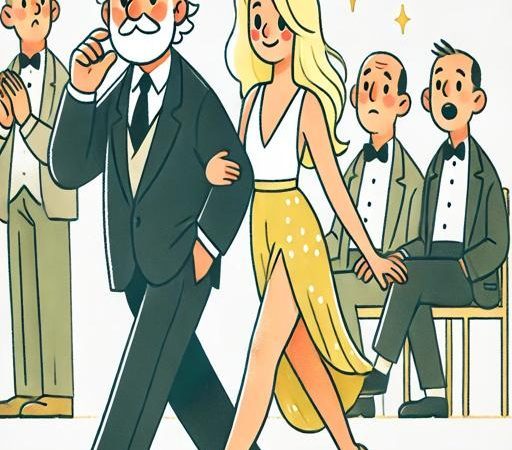 She glides into the room, turning heads with effortless grace. Every eye follows as she clings to Bob’s arm, gazing up at him like he’s the most captivating man alive.
