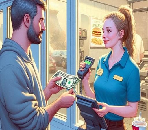 My spouse and I went through the Burger Barn drive-thru, and I handed the cashier a $10 bill.