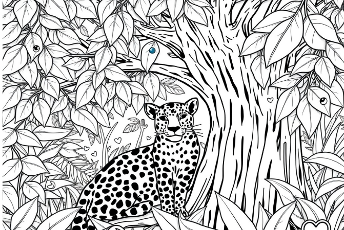 At first glance, the image looks simple. It shows a couple walking in the forest with their dog. There’s a pink butterfly, a sneaky fox, and a majestic owl. But there’s a secret: a tricky rabbit has hidden itself in this peaceful scene.